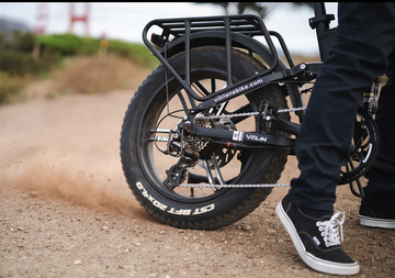 Mocny składany rower elektryczny wyposażony w podwójne amortyzatory zapewniające wszechstronność i możliwość jazdy w każdym terenie.